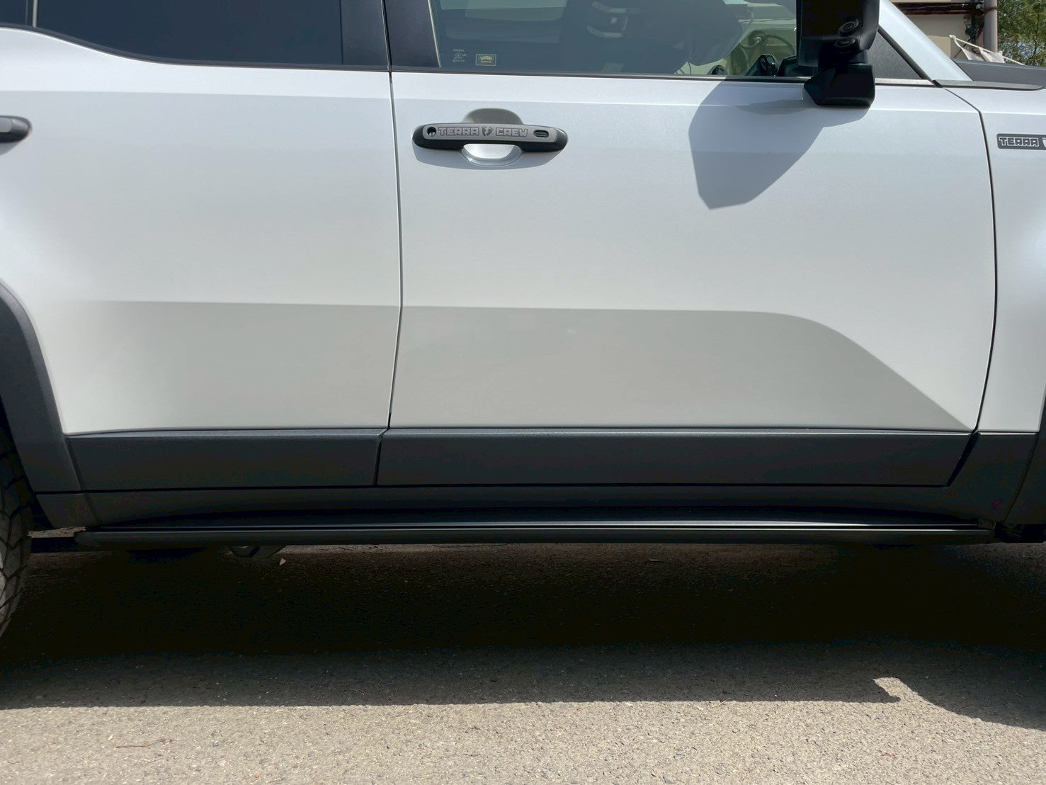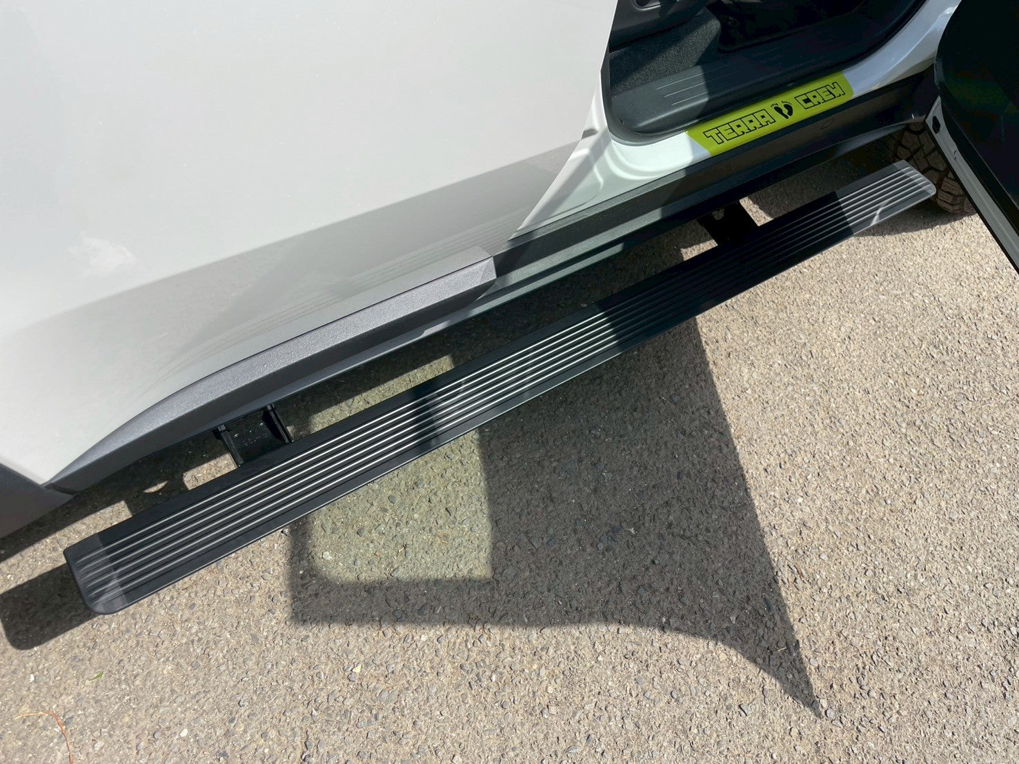 ドアクローズド時にはモーターによりステップがフォールドされ、ドアオープン時ではステップが展開します。スタイリッシュなフォルムと、実用性を実現する製品です。